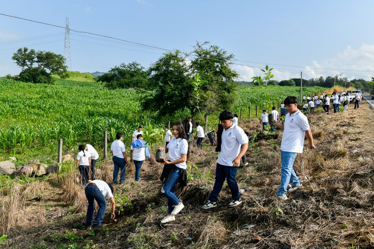 ** Estudiantes del primer semestre, junto con sus profesores y profesoras, personal administrativo y de servicios generales, así como personal del programa estatal Sembrando Vida plantaron 80 arbolitos.
