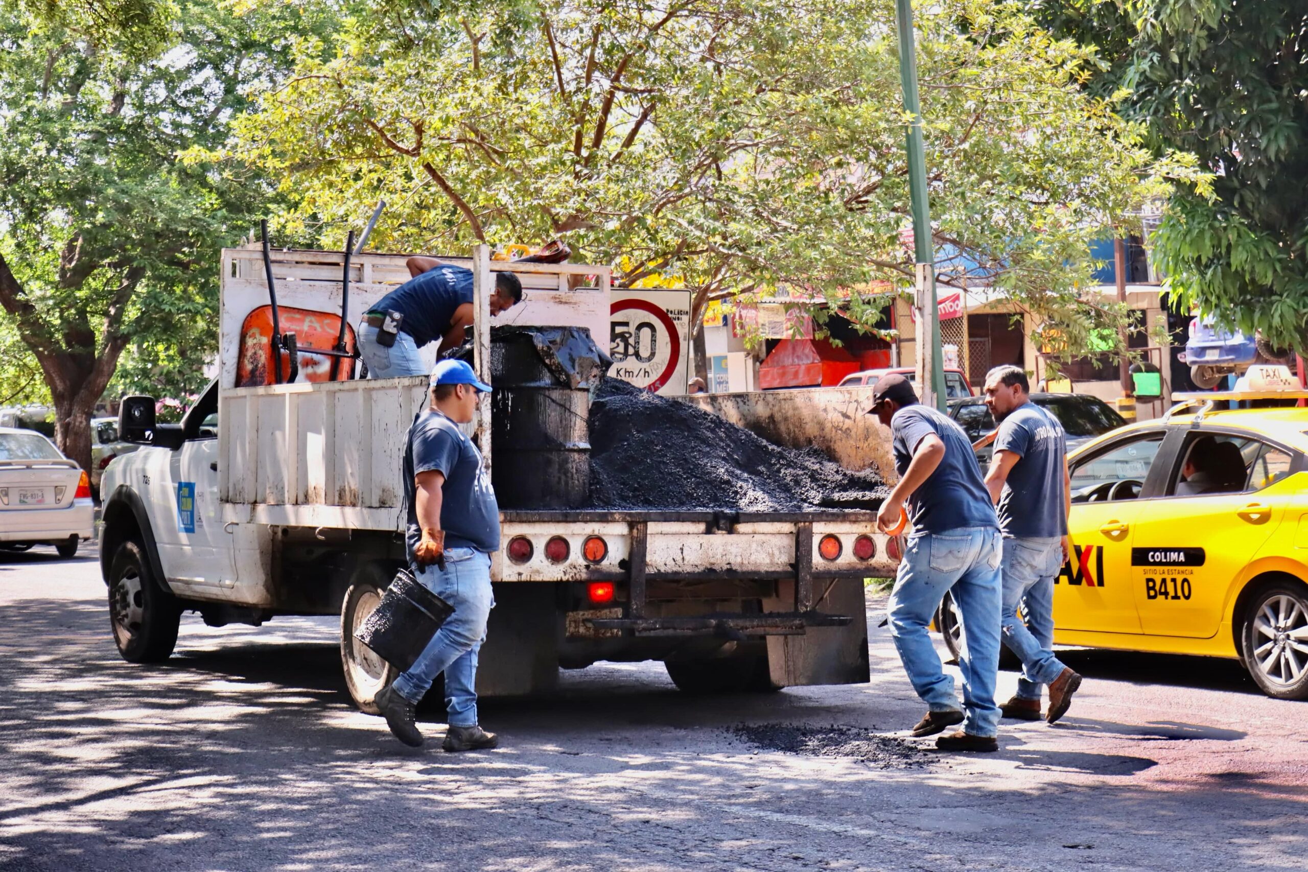 La Dirección de Mantenimiento del Ayuntamiento de Colima informó que en el bacheo se continúa trabajando ininterrumpidamente y ahora en el oriente de la ciudad, en la avenida Niños Héroes.
