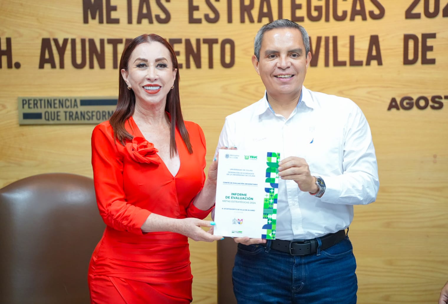 ‎ ‎A la entrega del Informe de Evaluación del Cumplimiento de las Metas Estratégicas del Programa de Gobierno del Año 2024 de Villa de Álvarez, asistieron también funcionarios municipales, Lizet Rodríguez, secretaria del Ayuntamiento, y Carolina Venegas, presidenta de la Federación de Egresados de la Universidad de Colima.