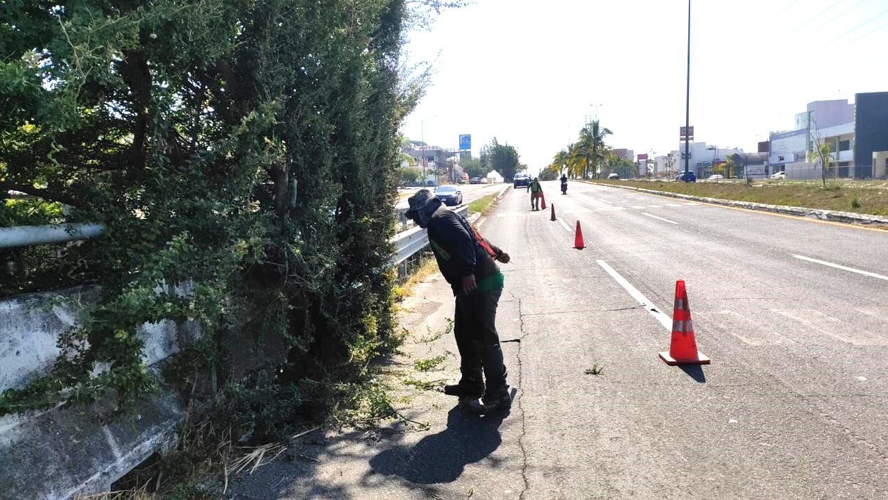 La cuadrilla municipal de limpieza de parques y jardines ha dado mantenimiento al Tercer Anillo Periférico con el objetivo de mejorar la imagen urbana y garantizar la seguridad de conductores y peatones.