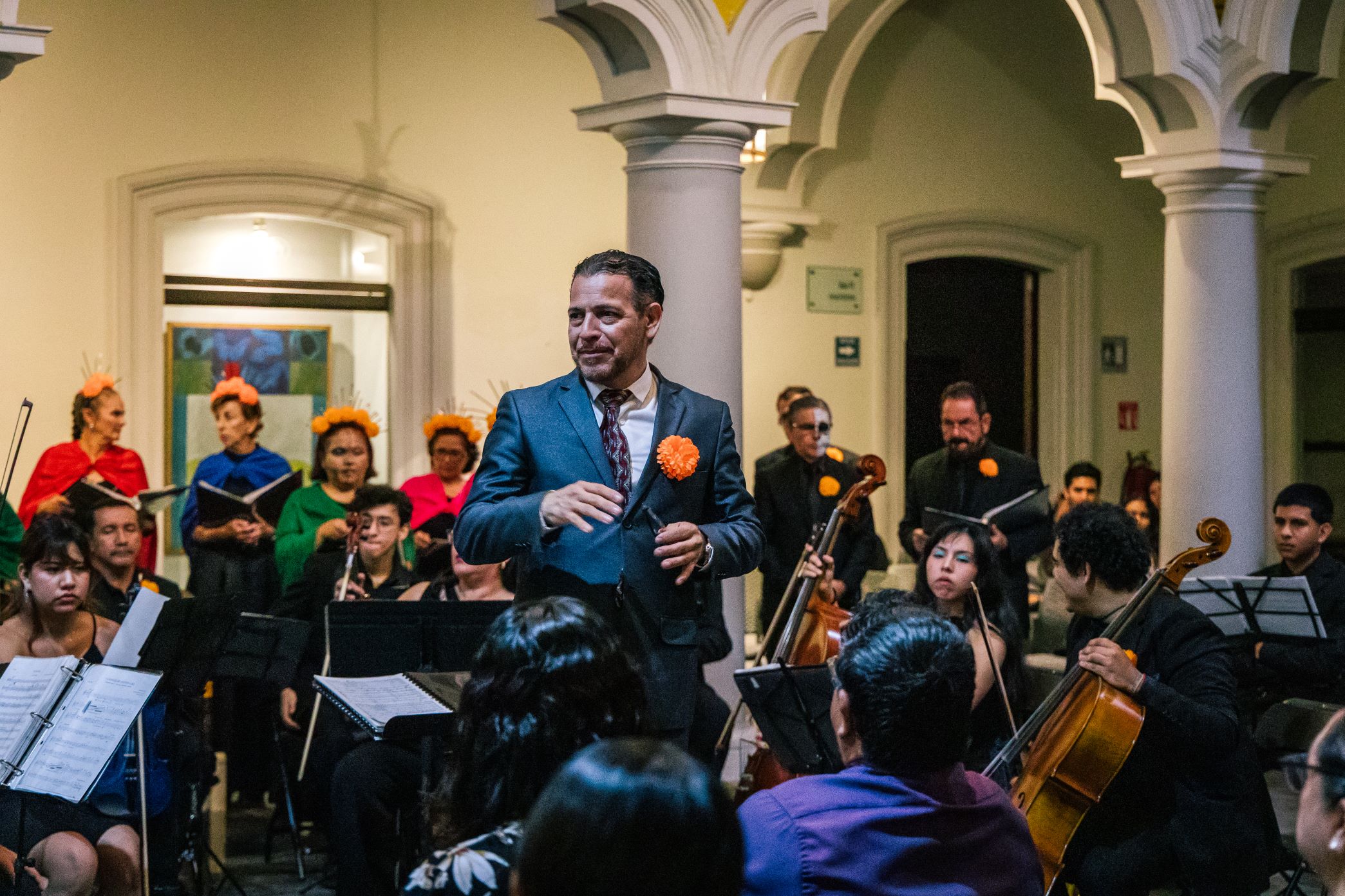 Sobre esta presentación, que contó con la participación de 25 integrantes del Coro y 28 músicos de la Orquesta Sinfónica, el compositor, músico y arreglista universitario José Antonio Frausto Zamora expresó que busca celebrar, desde la música, fechas de día de muertos con canto, música y poesía. “Para nosotros, la música y el sonido son reflejo de esa conexión con las personas que ya no se encuentran entre nosotros y han partido a otro plano, pero es también una celebración de la vida”.