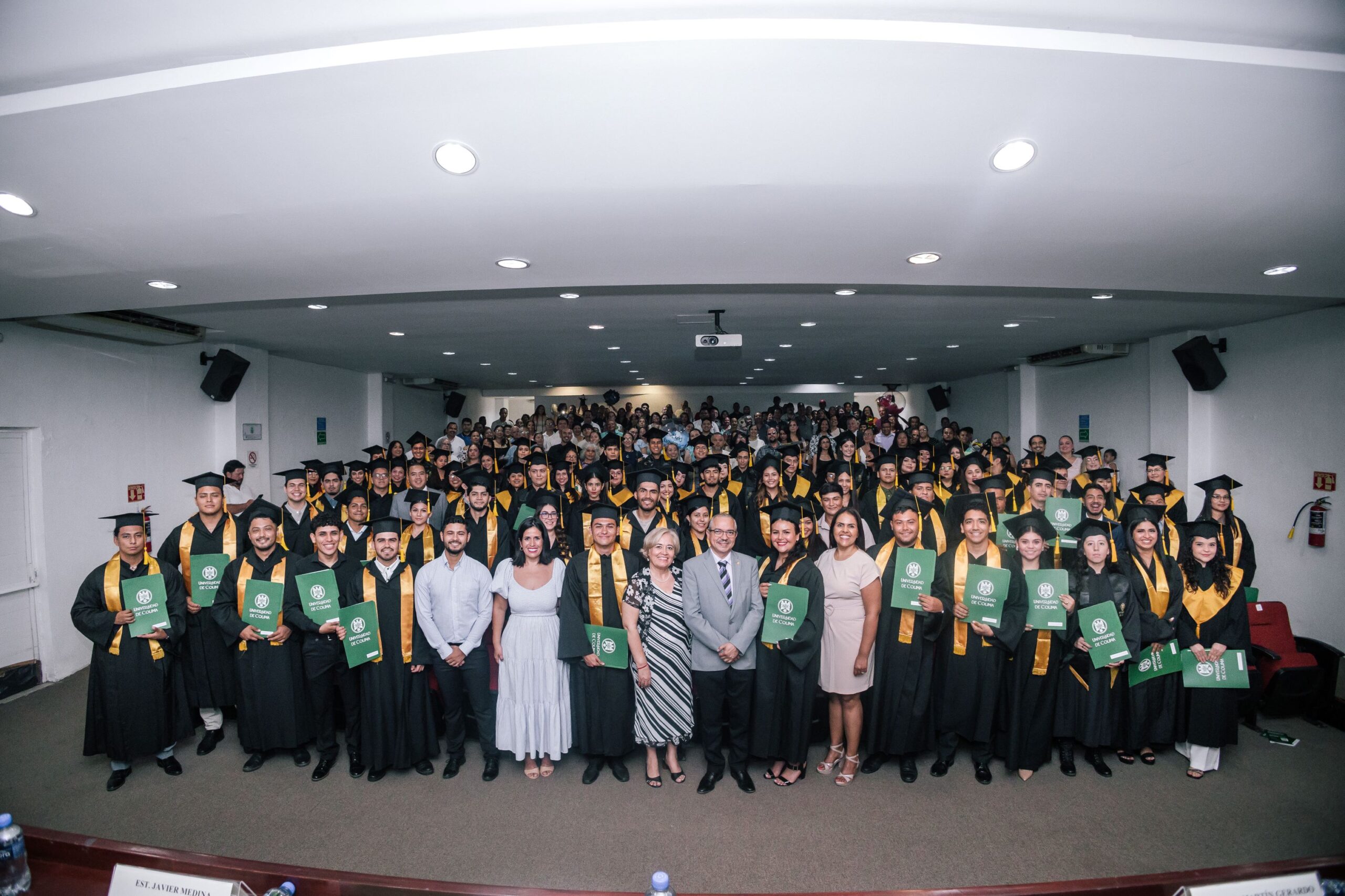 Añadió: “Recuerden que su desempeño no sólo hablará por ustedes, sino también por la institución de la que hoy egresan. Les invito a no perder de vista la responsabilidad que tienen frente a una sociedad que espera de ustedes un ejercicio profesional ético, honesto y a la altura de las circunstancias que enfrenten. Por ello, la educación continua debe estar presente en sus proyectos personales a corto y mediano plazo”.