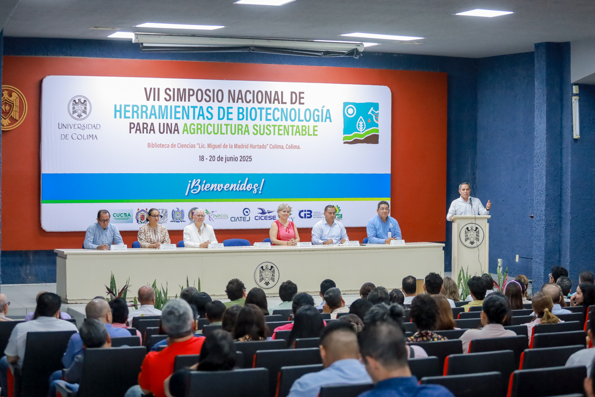 Christian Jorge Torres Ortiz Zermeño, rector de la Universidad de Colima, inauguró ayer la séptima edición del Simposio Nacional: Herramientas de Biotecnología para una Agricultura Sustentable, organizado por la Red Nacional de Cuerpos Académicos de Biotecnología y Sustentabilidad.
