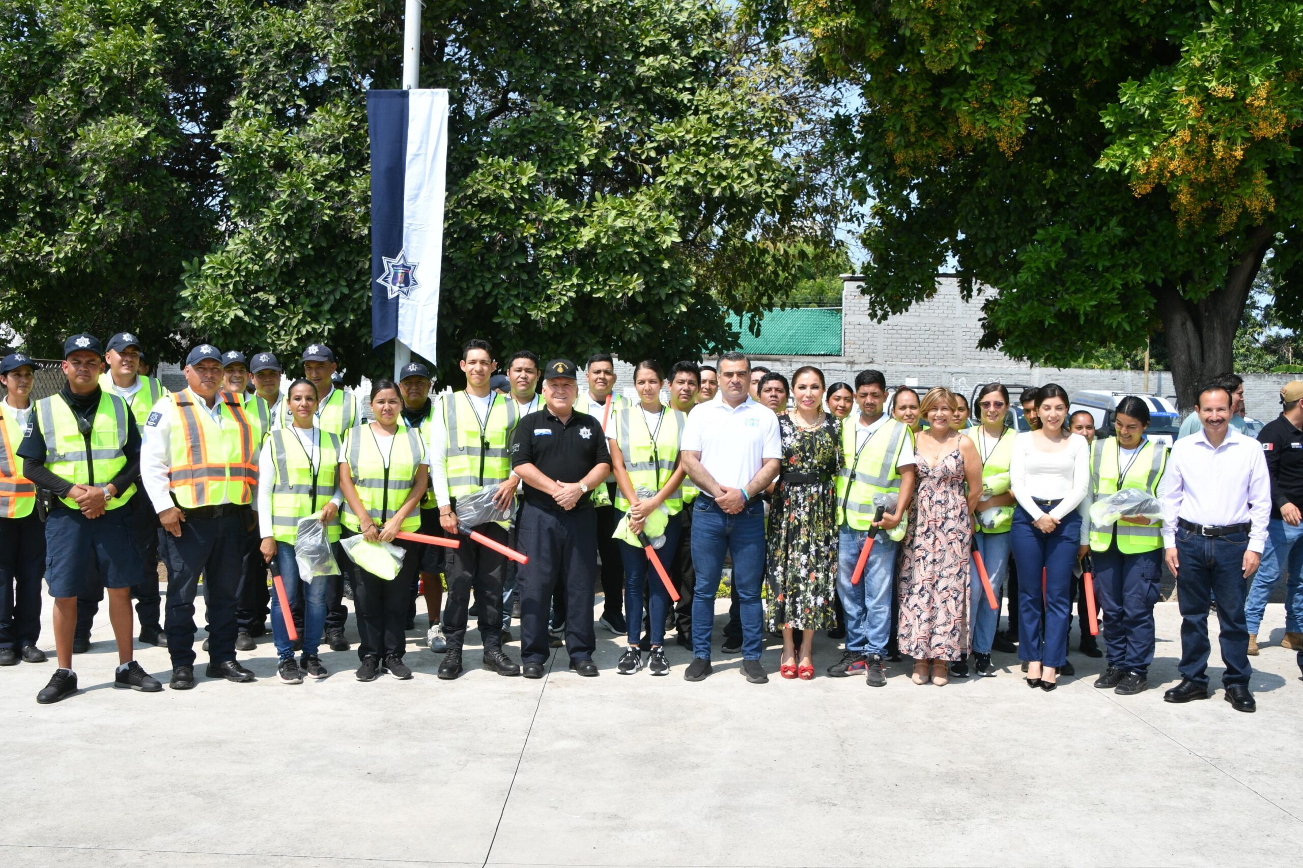 El equipamiento otorgado consta de una gorra, un chaleco reflectante, dos playeras, un silbato y un bastón de luz ámbar para cada elemento, herramientas indispensables para el adecuado desempeño de sus funciones en condiciones de seguridad y visibilidad, especialmente en zonas con alta carga vehicular o donde se desarrollan obras de infraestructura urbana.