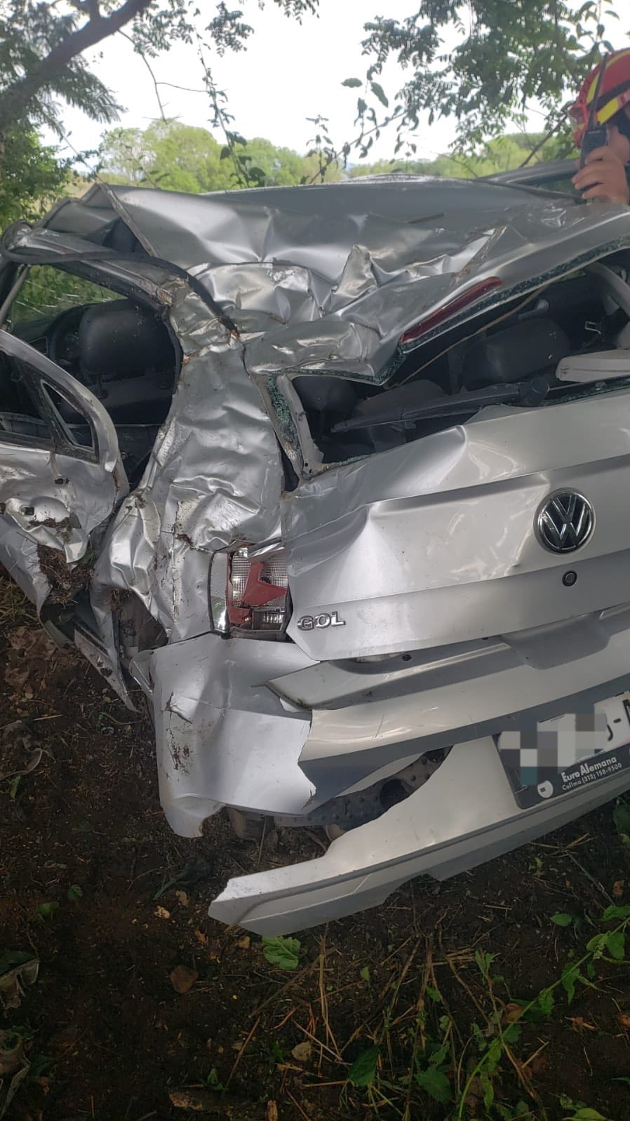 (Foto: Auto en que murieron 3 jóvenes en el accidente en la carretera a El Chivato.)