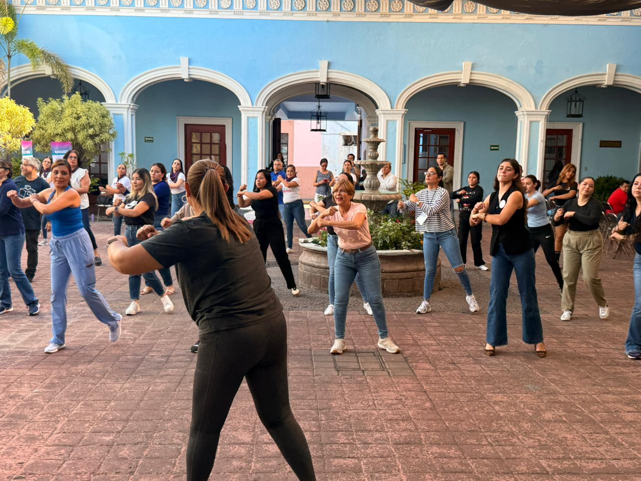 La activación física se desarrolló en el patio central de la Presidencia Municipal en donde empleados de las diversas áreas del Ayuntamiento se unieron a esta jornada de salud. Se contó con el apoyo de la promotora deportiva Ely Panduro, quién dirigió la ejercitación de hombres y mujeres de todas las edades que se sumaron a esta jornada.