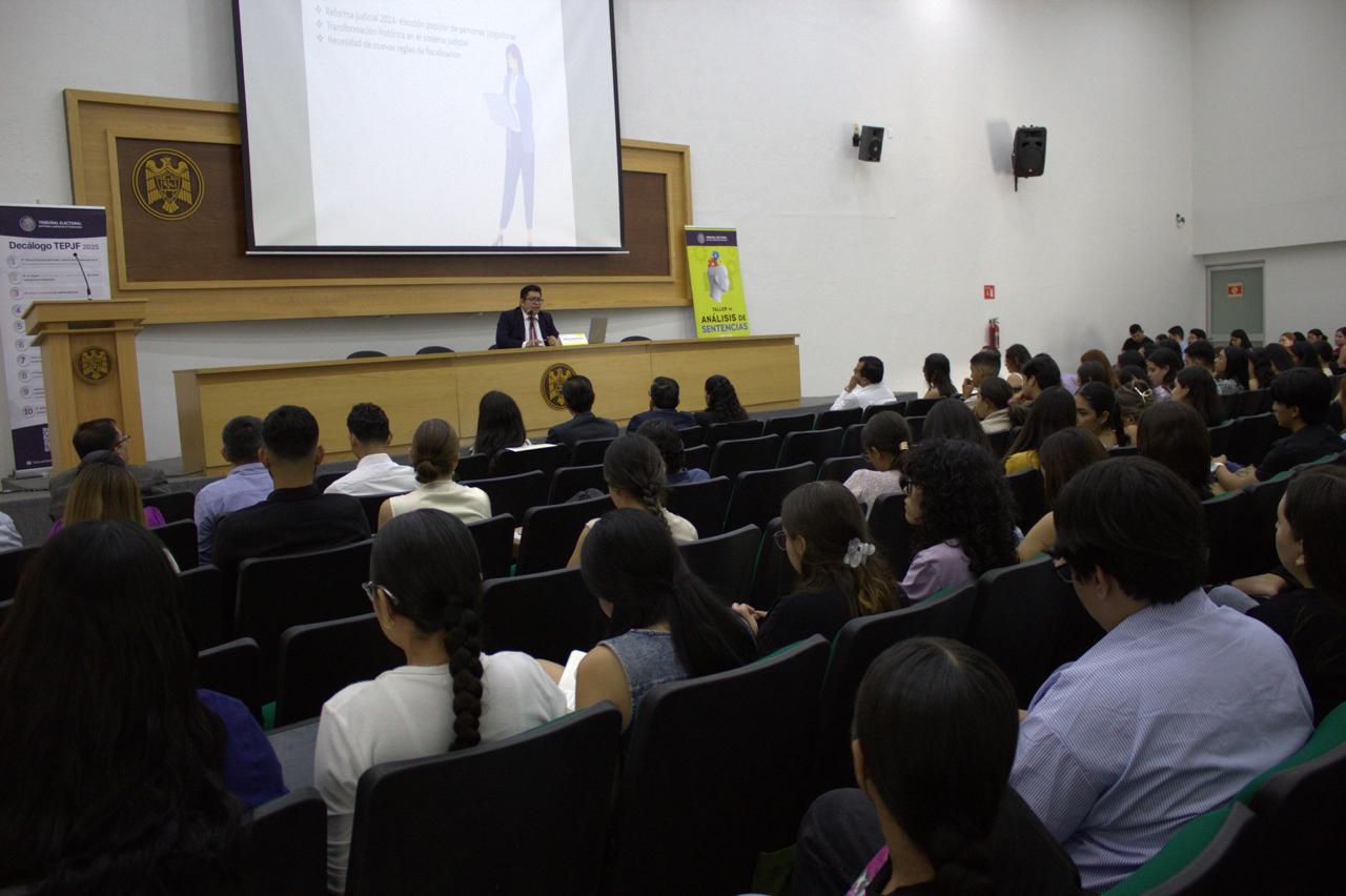 La Facultad de Derecho de la Universidad de Colima, en colaboración con el Tribunal Electoral del Poder Judicial de la Federación (TEPJF) y a través de la Dirección General de Relaciones Institucionales Nacionales, llevó a cabo el Taller de Análisis de Sentencias 2025, espacio de formación jurídica dirigido a la comunidad estudiantil.