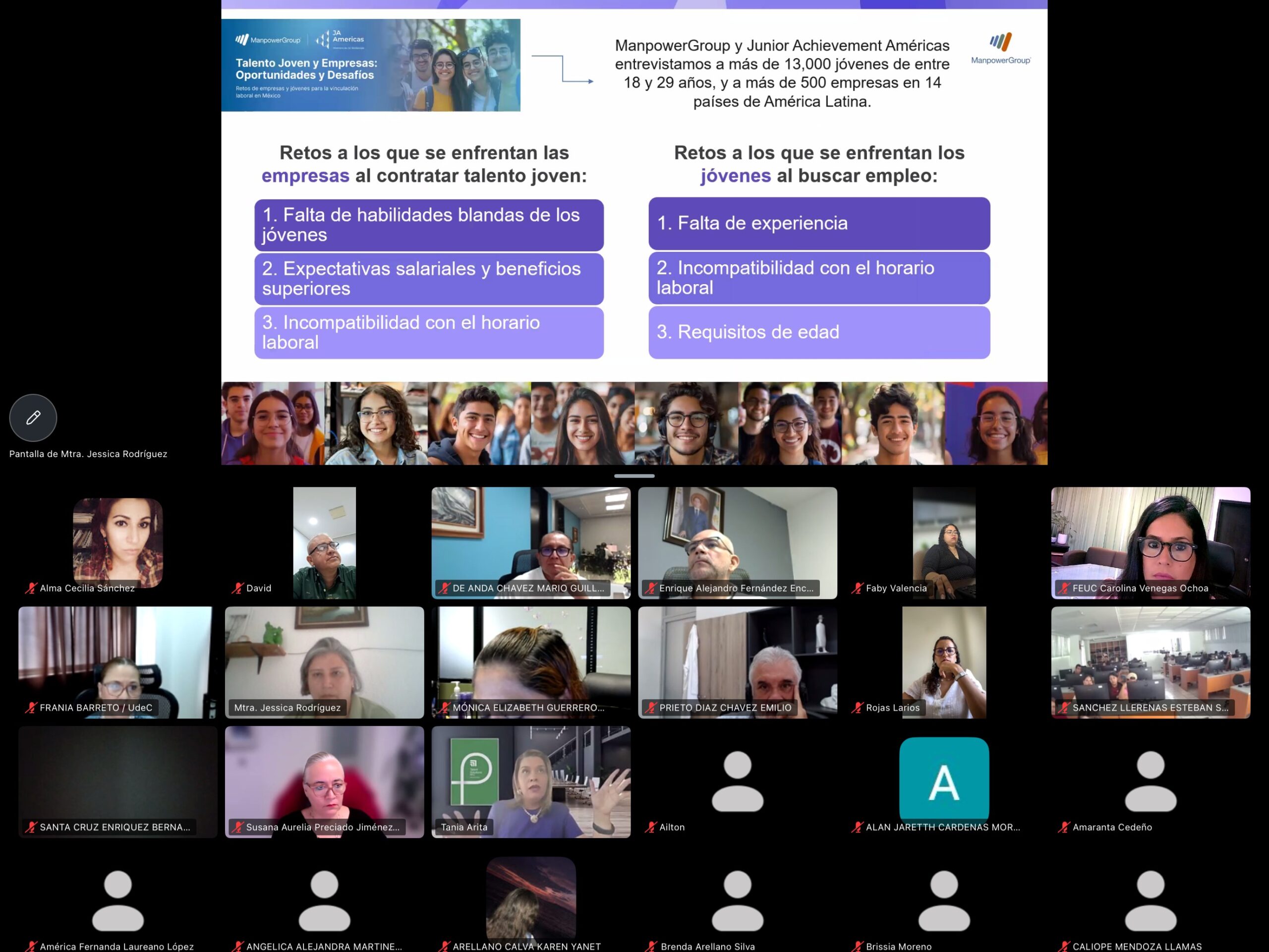 En su exposición, explicó que actualmente el mercado laboral enfrenta una brecha entre las habilidades que demandan las empresas y las que poseen muchos profesionistas. “En México, alrededor del 67 por ciento de los empleadores reportan dificultades para cubrir vacantes por falta de talento calificado, fenómeno que refleja la necesidad de fortalecer las competencias profesionales desde la etapa universitaria”, dijo.