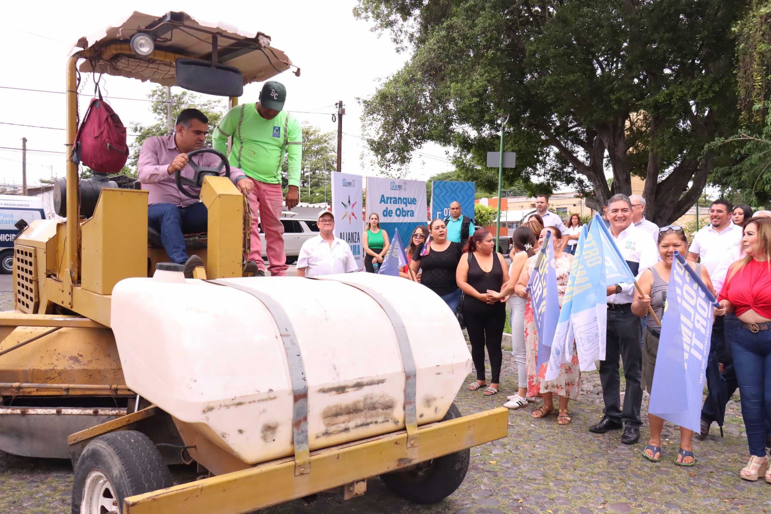Rivera Gutiérrez encabezó ayer el inicio de la pavimentación de la calle Agrarista, en el tramo entre Madero y Morelos, junto al jardín de El Moralete.