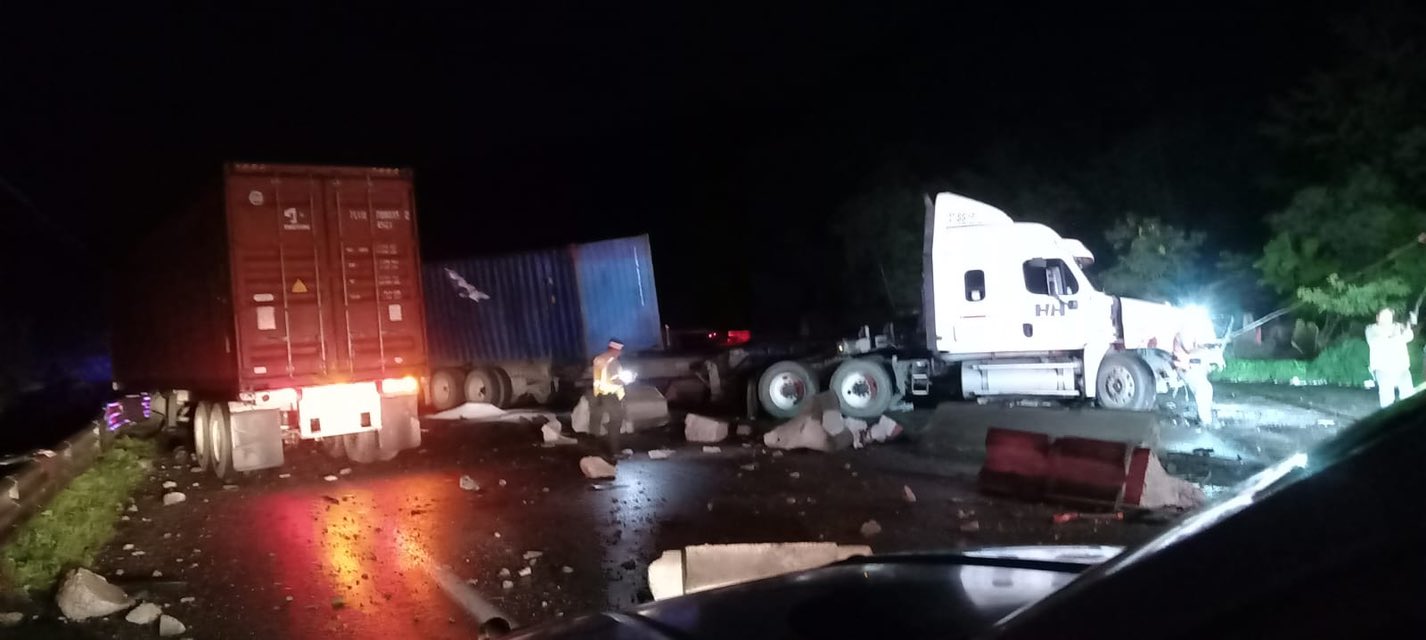 Los traileros atacan de nuevo y 2 de ellos chocaron entre sí ayer en la tarde en la autopista, cerca de Tecolapa, municipio de Tecomán.