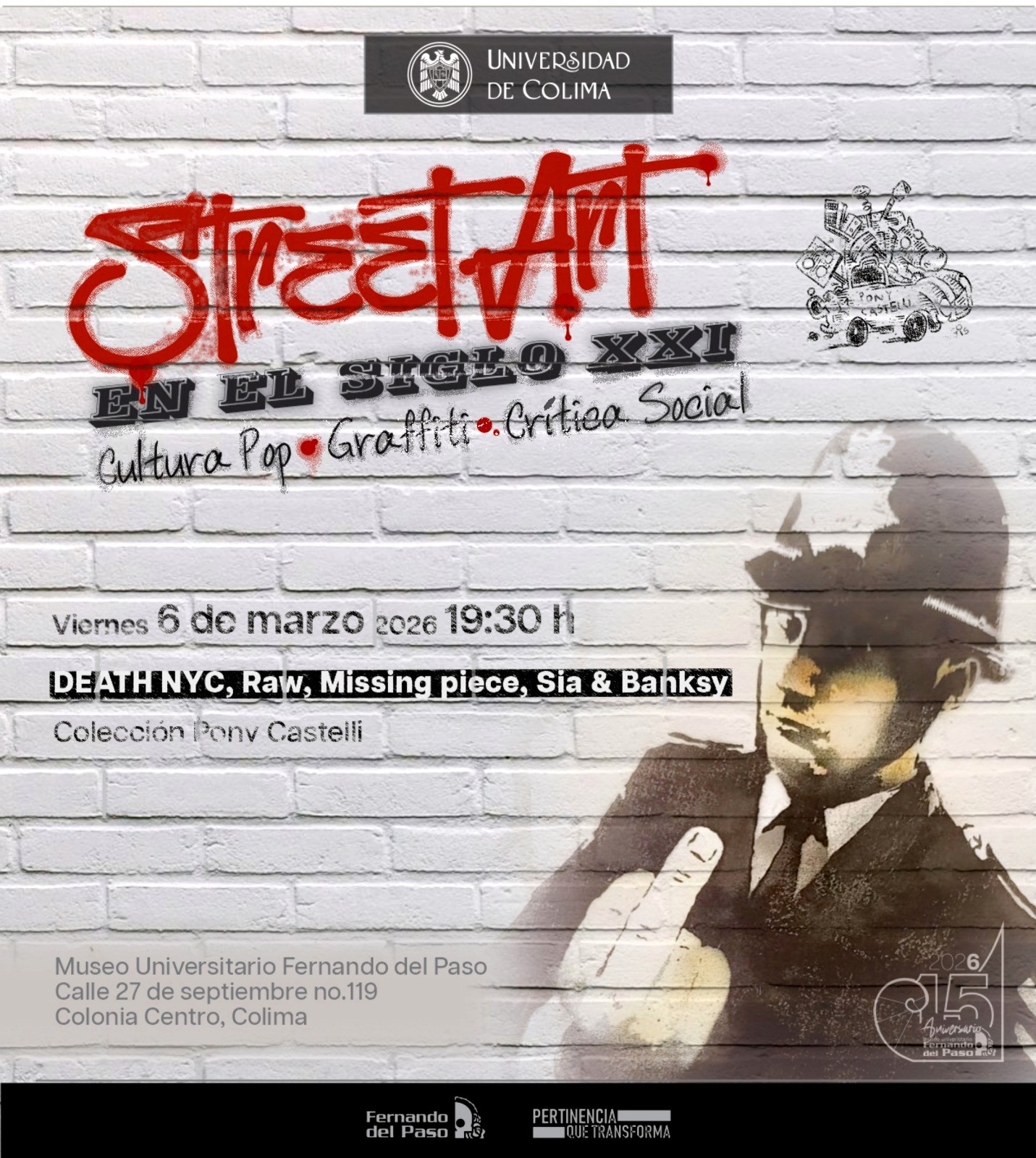 Con el propósito de iniciar la celebración de sus 15 años de vida, el Museo Universitario Fernando del Paso de la Universidad de Colima invita a la apertura de la exposición “Street art en el siglo XXI. Cultura pop, graffiti y crítica social”, un proyecto con enfoque interpretativo y didáctico que traza la evolución del arte urbano contemporáneo desde movimientos emblemáticos como el pop art y el street art de las décadas de 1960 y 1970.