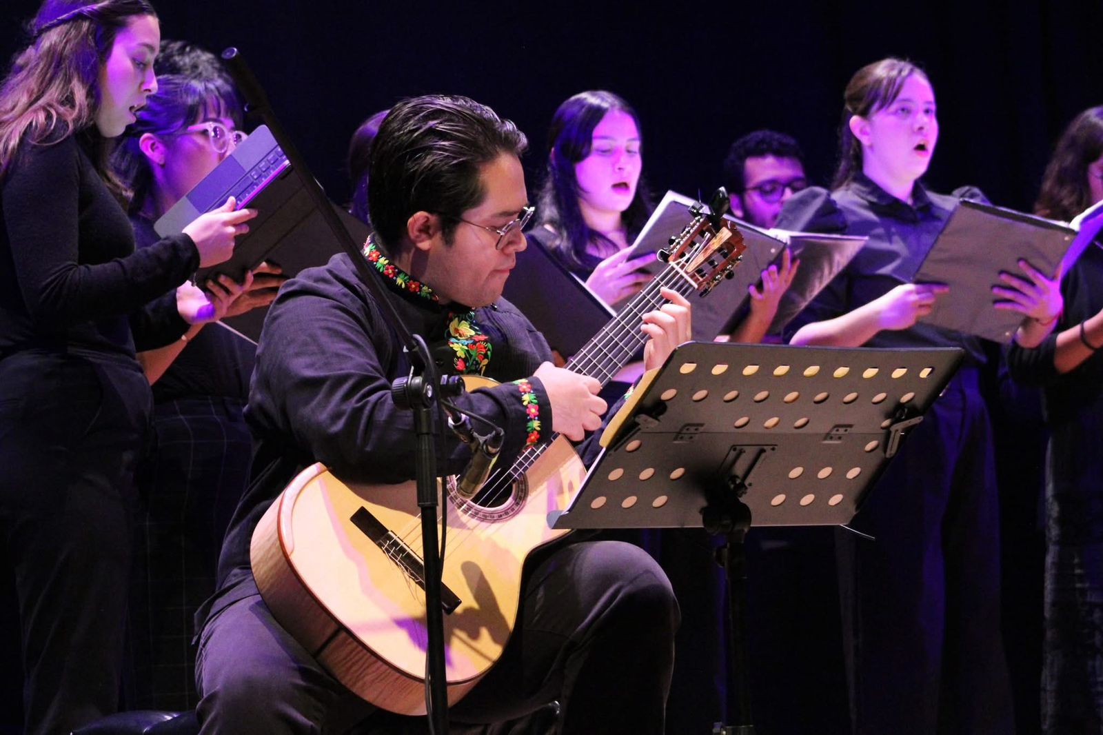 Uno de los momentos más destacados de la noche fue la ejecución del Romancero Gitano Op. 152, de Castelnuovo-Tedesco, una obra monumental compuesta para coro y guitarra, en la que Juan Ramón Canchola brilló como solista. La obra, inspirada en los textos del poeta Federico García Lorca, fue además enriquecida por una charla del musicólogo español Mtro. Alberto Hurtado Giménez, quien compartió una reflexión titulada “Federico y el Romancero Gitano, según Tedesco”, aportando contexto literario y musical al repertorio.
