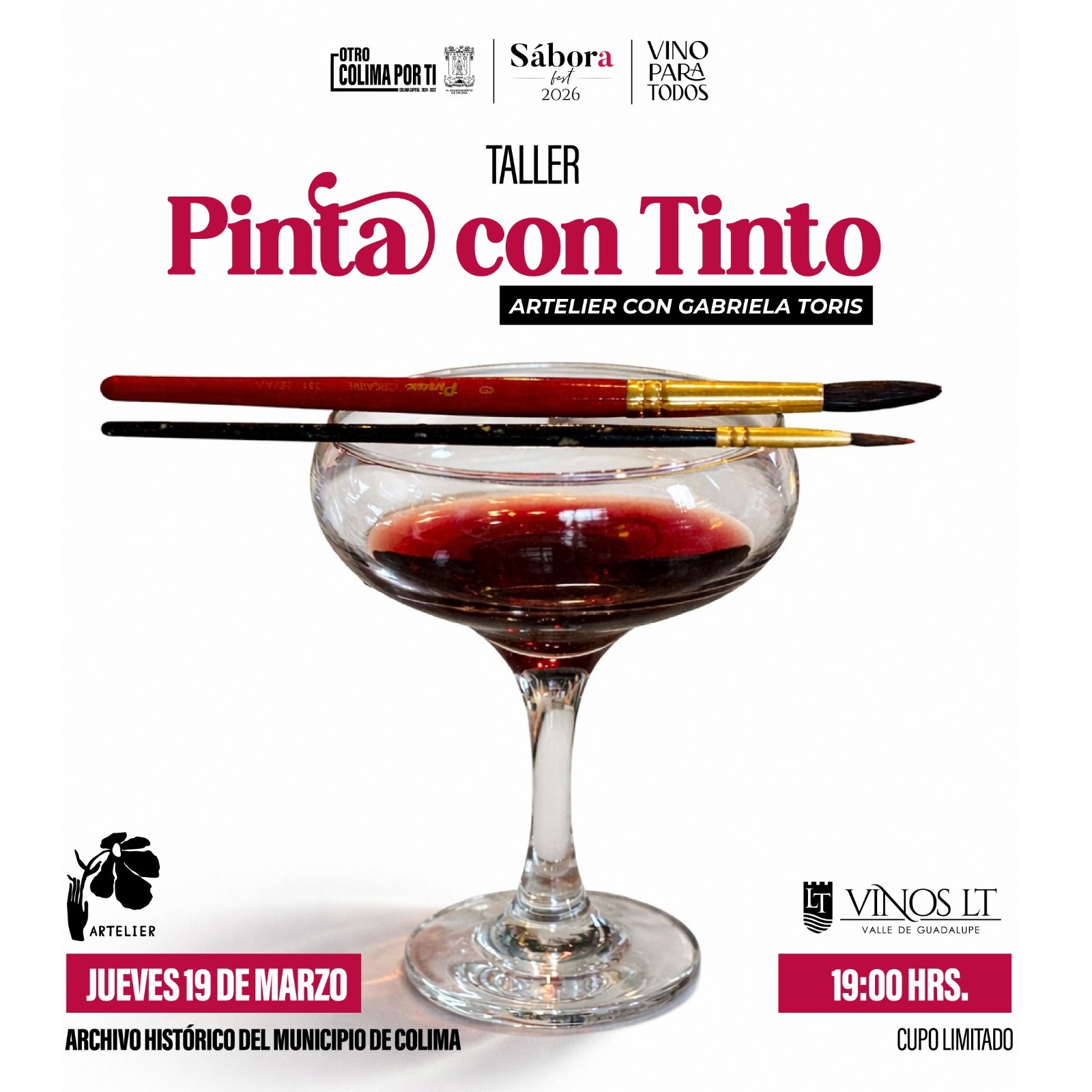 De acuerdo con los reportes de los organizadores, del taller Pinta con Tinto se están ofertando los últimos espacios; este taller se presta para que los participantes dejen volar su imaginación y su creatividad generando una experiencia única. En el taller Pinta con Tinto, estará participando la casa vinícola Vinos LT, de Valle de Guadalupe y el restaurante Artelier con Gabriela Toris, a partir de las 19:00 horas.
