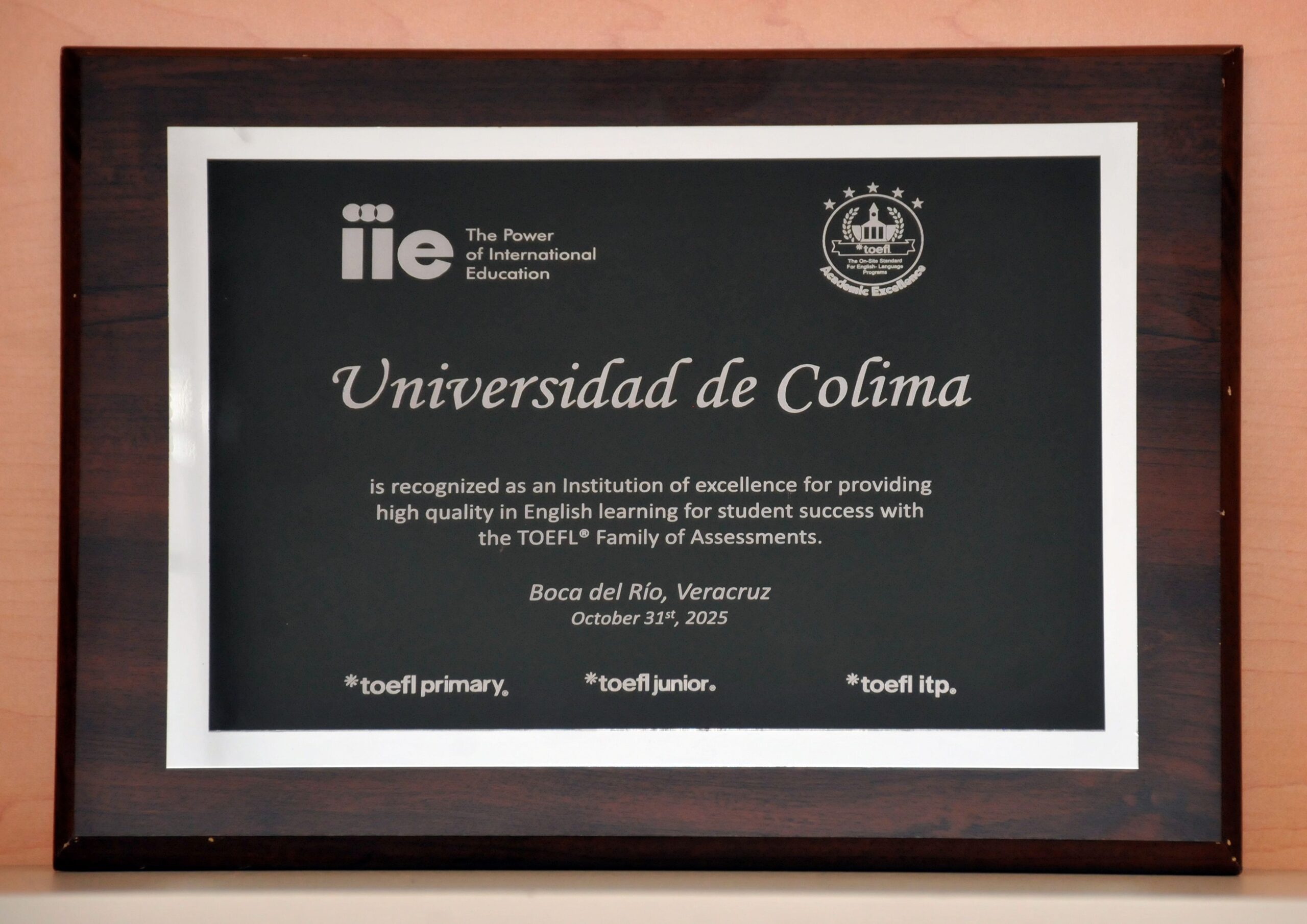 En la convención internacional de MEXTESOL se efectuó la ceremonia TOEFL Awards 2025, en que la Universidad de Colima fue reconocida como una institución de excelencia por la calidad de sus servicios educativos, el número de exámenes administrados y el cumplimiento de los más altos estándares internacionales en la aplicación de evaluaciones tipo TOEFL.