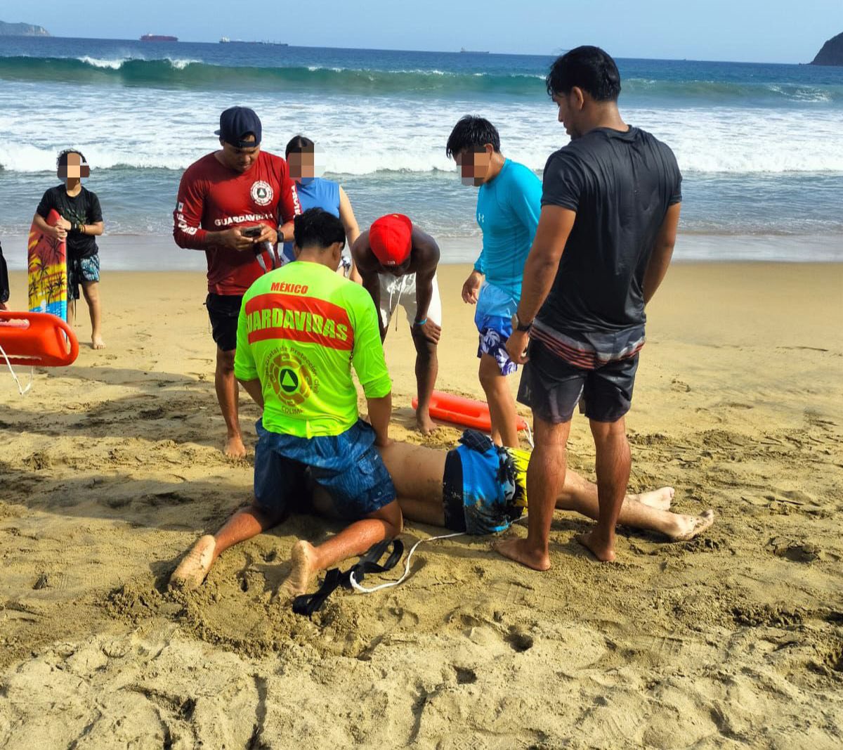 Guardavidas de Protección Civil Estatal rescataron ayer a 4 turistas a punto de ahogarse en aguas marinas, en Manzanillo.