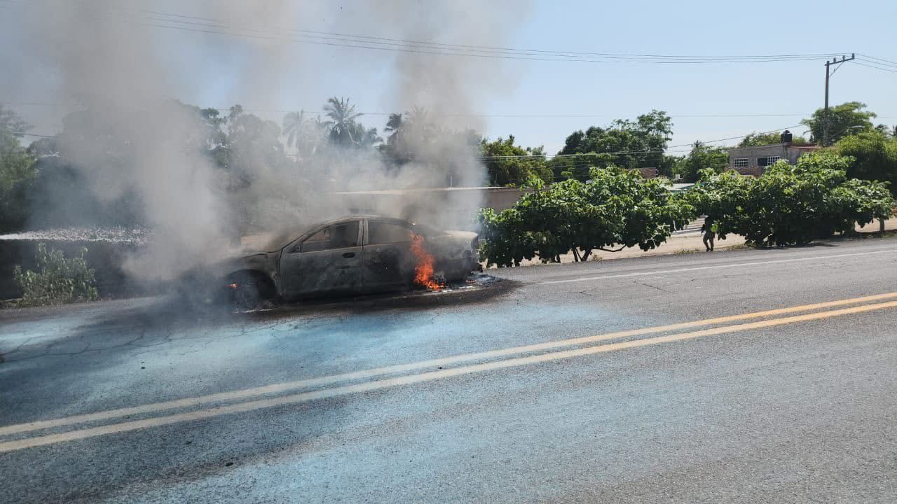 Un automóvil fue consumido por el fuego debido a fallas en el sistema eléctrico, en la carretera de Manzanillo a Cihuatlán, a la altura del poblado La Ciénega.