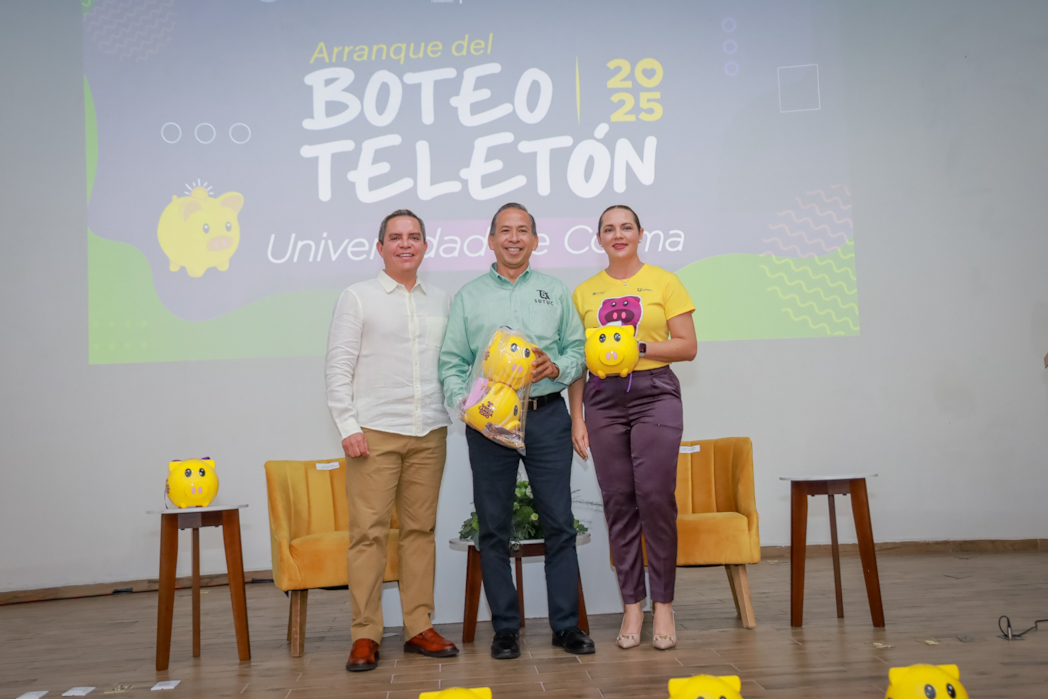 Con la participación solidaria de funcionarios universitarios, este lunes dio inicio la colecta Boteo Teletón 2025 en la Universidad de Colima. El evento fue encabezado por el rector Christian Jorge Torres Ortiz Zermeño y la presidenta del Voluntariado Universitario, Blanca Liliana Díaz Vázquez, en el Auditorio de la Facultad de Ciencias Políticas y Sociales.