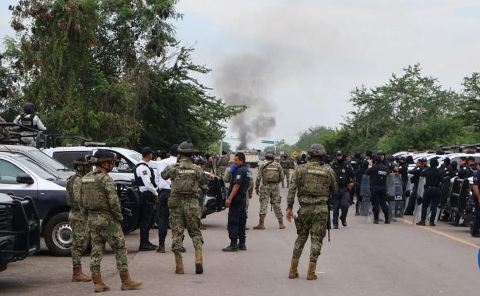 Las autoridades dijeron mantener disposición al diálogo con esa comunidad y reiteraron su compromiso con la tranquilidad de la población colimense. Soldados de Marina y de la Guardia Nacional, agentes Policía Estatal, Fiscalía General del Estado y policías municipales de Tecomán se presentaron en el bloqueo. Un helicóptero del Ejército sobrevuela la zona.
