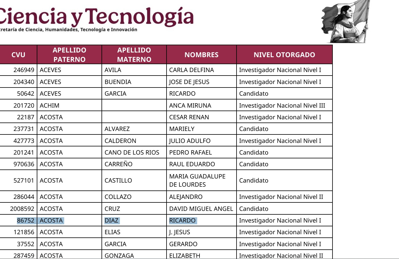 En el Nivel III: Óscar González Pérez, Alexandra Pita González y María Tejeda Yeomans. Y como Investigador Nacional Emérito, Alejandro González Ojeda.