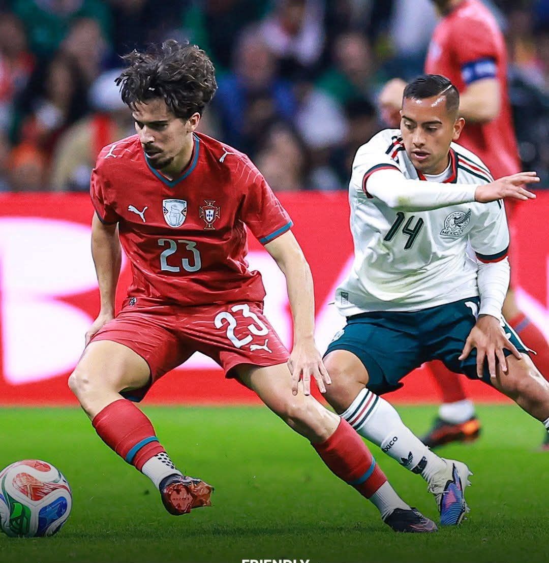 La presión alta de los lusitanos puso en aprietos a los mexicanos, un balón al poste, remates en el área desviados, balones perdidos en la salida y los afanes de habilidad de Tala Rangel que puso al menos una vez en riesgo su arco.